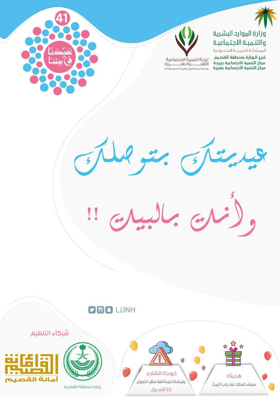 مبادرة عيدنا في بيتنا 41 برعاية صاحب السمو الملكي الأمير الدكتور فيصل بن مشعل بن سعود بن عبدالعزيز آل سعود تهدف غلى إدخال البهجة والسرور على أهالي أحياء مدينة عنيزة بتوزيه هدايا العيد في منازلهم وتضمنت فعاليتاتها مسيرة السيارات الكلاسيكية أثناء توزيع الهديا والتي امتدت إلى ثالث أيام عيد الفطر المبارك . لجنة التنمية الاجتماعية الأهلية بعنيزة .