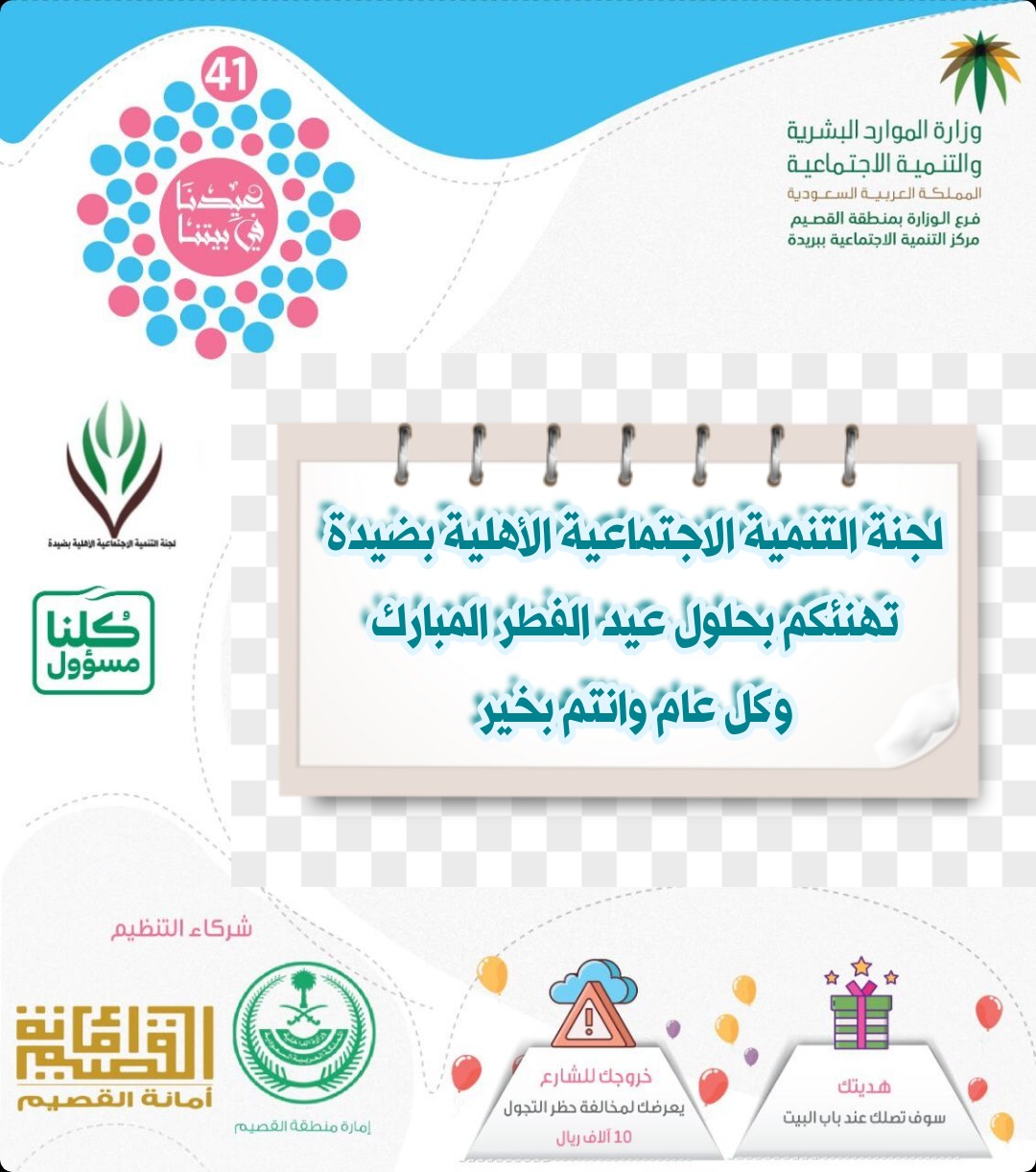 لجنة التنمية الاجتماعية الاهلية بضيده أقامت العديد من البرامج والفعاليات الاجتماعية والتدريبية والترفيهية وتلبية لمبادرة أمير منطقة القصيم حفظه الله قامت اللجنة بتجهيز الهدايا المقدمه من إمارة القصيم وتوزيعها على الأهالي وفق الشروط الوقائية